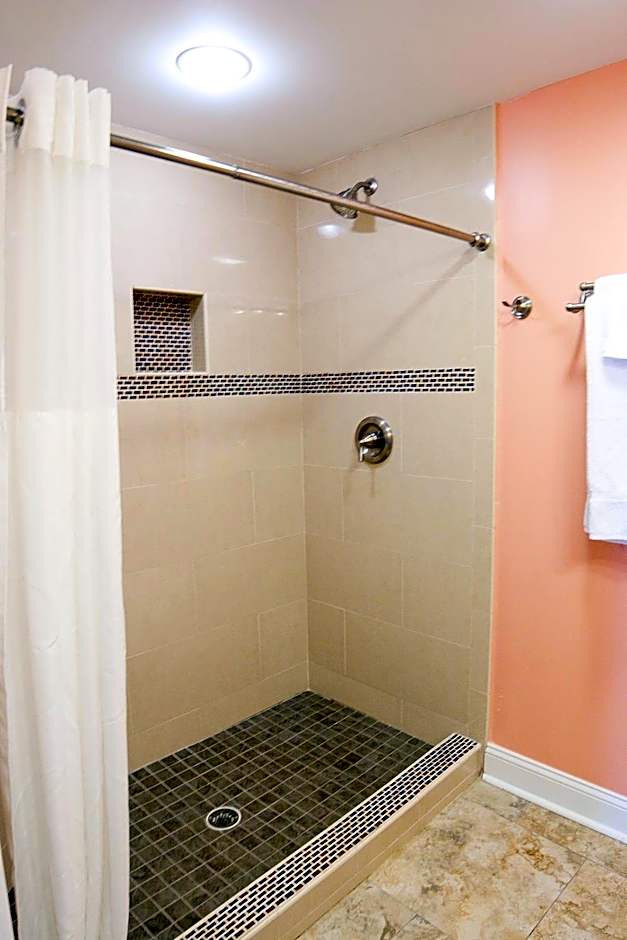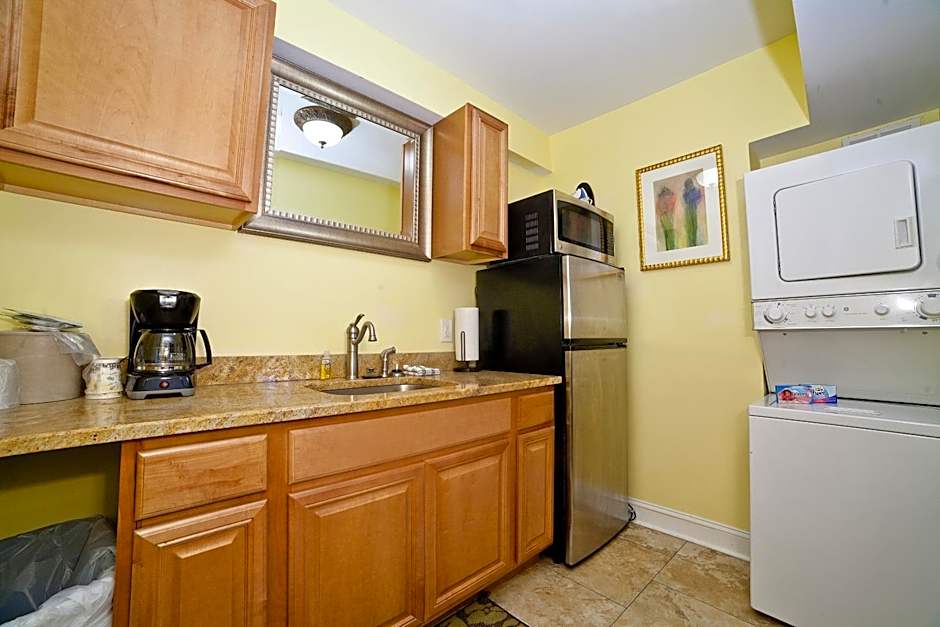 This spacious suite features a 42-inch flat-screen cable TV, refrigerator, and additional counter space with a sink. A microwave and an private bathroom are also included.